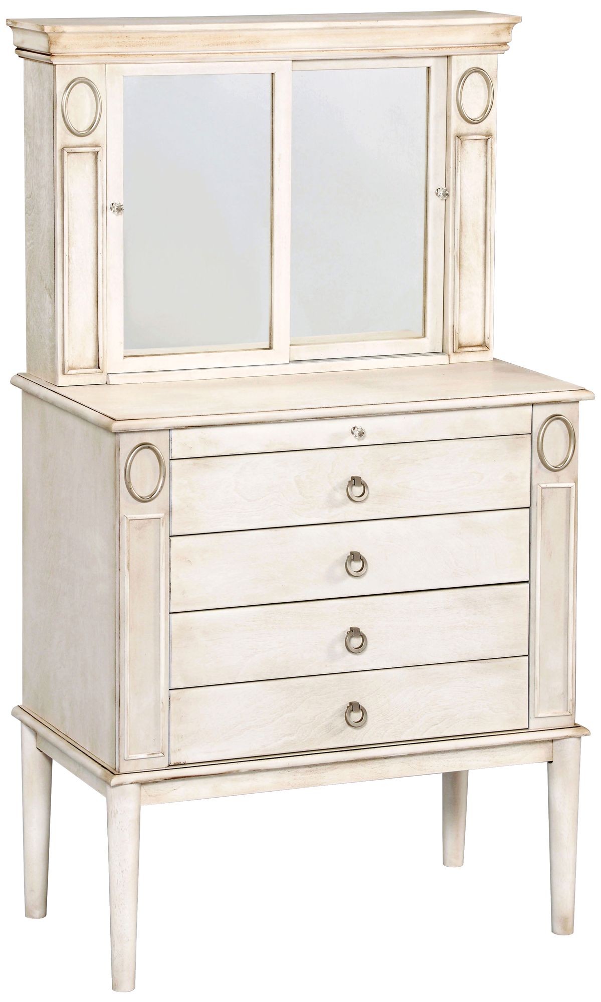 Antique White Jewelry Armoire Mirror Four Drawers Lift