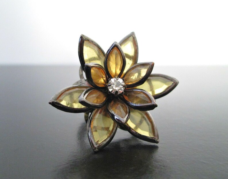 Large Amber Flower Ring Vintage Rhinestone Costume Jewelry