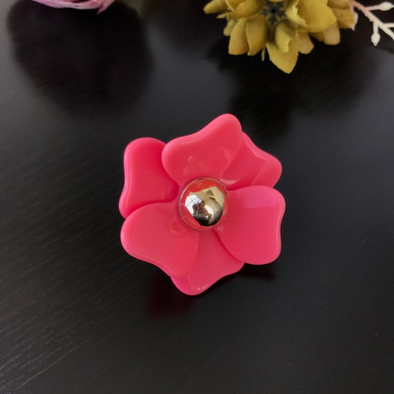 Handmade Plastic Ring Peach Flower Costume Jewelry Sold By Shopbeoriginal