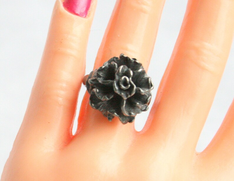 Vintage Black Flower Ring Gunmetal Silver Ring Vintage Art Nouveau Gunmetal Rose Chunky Big Costume Jewelry Ring