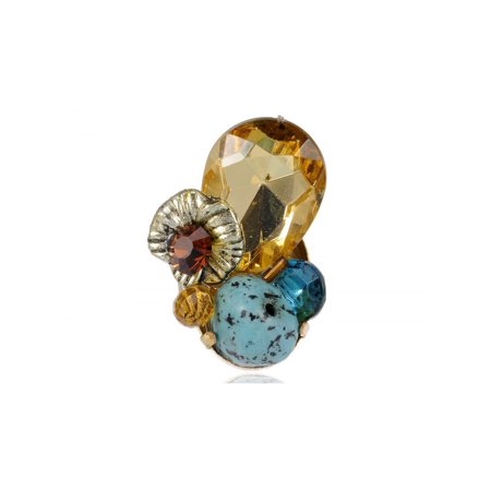 Large Topaz Round Oval Face Rhinestone Flower Turquoise Like Stone Costume Ring