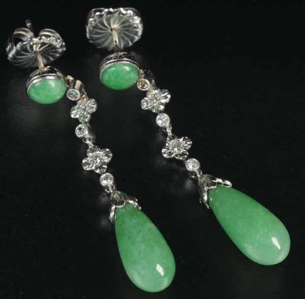 Antique Jewelry Jade Diamond Drop Earrings