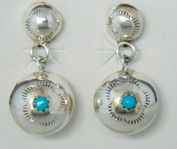 Native American Navajo Turquoise Sterling Silver Double Concho Pillow Earrings Shirley Johnson Sale
