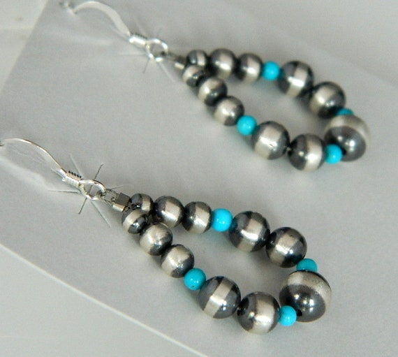 Native American Navajo Blue Turquoise Sterling Silver Bead Handmade Earrings 1 5 8 Sale