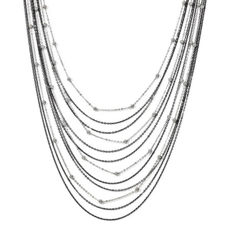 Two Tone Beaded Multi Strand Necklace In Sterling Silver 24 26 Inch