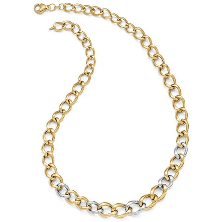 Italian Fancy Graduated Curb Link 14k Two Tone Gold Necklace 18 Inch