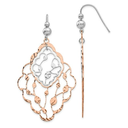 Sterling Silver Rose Gold Tone Lg Scalloped Foliage Dangle Earrings