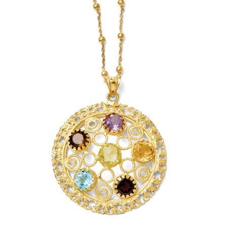 Multi Gemstone Ornate Circle Necklace 18k Gold Plated Sterling Silver